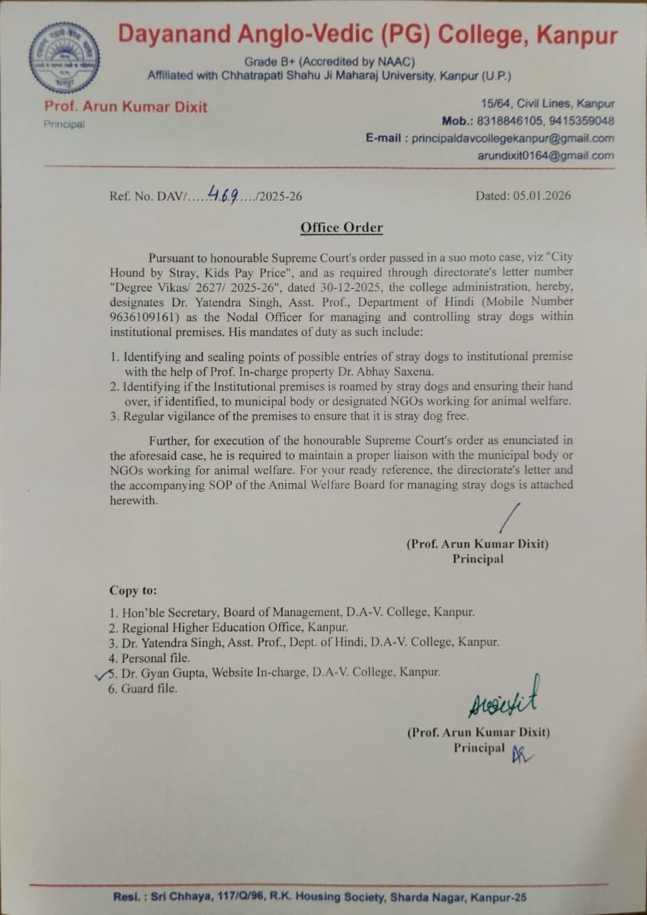 Notices For Nodal Officers Of Dogs Management At College Level